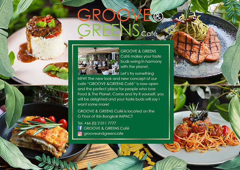 (IBIS)曼谷 IMPACT 酒店全新开设的咖啡厅风格餐厅“Groove and Green Cafe”提供来自植物(Plant-based Food)的健康食品,是不容错过的一大亮点,还有泰国和国际菜肴,还有很多饮品、多种菜单都来自我们名厨。