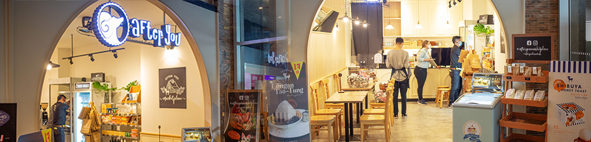 อาฟเตอร์ยู (After You Dessert Café) เป็นร้านขนมหวานรสชาติละมุนที่ครองใจลูกค้าเป็นอย่างดี โดยมีเมนูของหวานอร่อยให้เลือกหลากหลายเมนู อาทิ Shibuya Honey Toast, เค้กช็อกโกแลตลาวา Panookie, Figgy พุดดิ้ง และอื่นๆ นอกจากนี้ ยังมีเมนูที่จะเพิ่มขึ้นใหม่ให้ลูกค้าได้ลิ้มลองเป็นประจำ อาฟเตอร์ยู เป็นร้านขนมที่มุ่งมั่นที่จะนำเสนอคาเฟ่พิเศษที่สุดและขนมหวานที่ดีที่สุดที่ทำจากส่วนผสมที่ดีที่สุด เป้าหมายของอาฟเตอร์ยู คือ เพื่อให้เป็นมาตรฐานเดียวกันของคุณภาพและการบริการ รวมทั้งบรรยากาศ และความอบอุ่นสำหรับทุกคน มาเพลิดเพลินไปกับหลากหลายเมนูของหวานได้แล้วที่อาฟเตอร์ยูทุกสาขา ทั่วกรุงเทพฯ