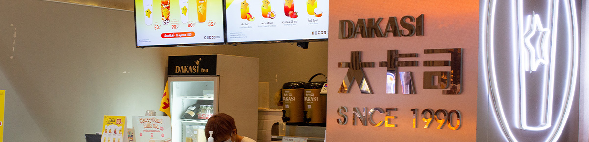 DAKASI เมนู ชานมไข่มุกสัญชาติไต้หวัน ที่โดดเด่นด้วยตัวร้านสีเหลืองเด่น พร้อมกับโลโก้ รูปดาวสุดน่ารัก